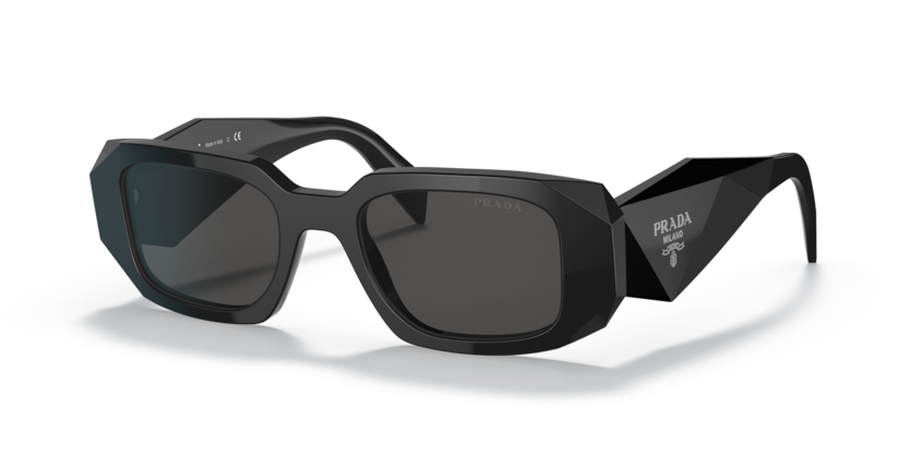 La Prada PR 17WS, baptisée Symbole, présente une silhouette rectangulaire géométrique en acétate épais. Ses branches multifacettes créent un effet sculpté distinctif, tandis que le logo Prada Milano triangulaire gravé rend le design instantanément reconnaissable. Ce modèle est disponible en plusieurs coloris.